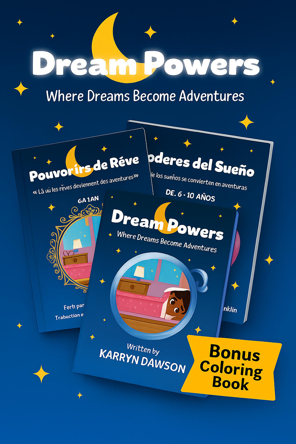 Unlock the magic of Dream Powers in three languages! This special combo pack includes the English, Spanish (Poderes del Sueño), and French (Pouvoirs de Rêve) editions, so kids, parents, and classrooms can enjoy Leevanie’s adventures across cultures and tongues.